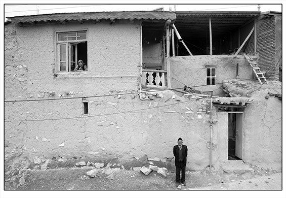 جای دادن موضوع ها در فضای عکس متاثر از میل آنها برای جدایی از یکدیگراست . یعنی پیرمردها و پیرزنها دوست ندارند در انظار عمومی کنار یکدیگر دیده شوند و روبروی دوربین نیز از جملۀ انظار عمومیست. البته بسیاری از زنان به ایستادن در پشت ایوان با داشتن فاصله چند متری از دوربین هم رضایت ندادند. زنان پشت سرمردان وهمواره در چار چوب انتخاب شده قرار می گیرند. نماد بیرونی یک خانواده مرد و زن بخشی از خانه محسوب می شود .